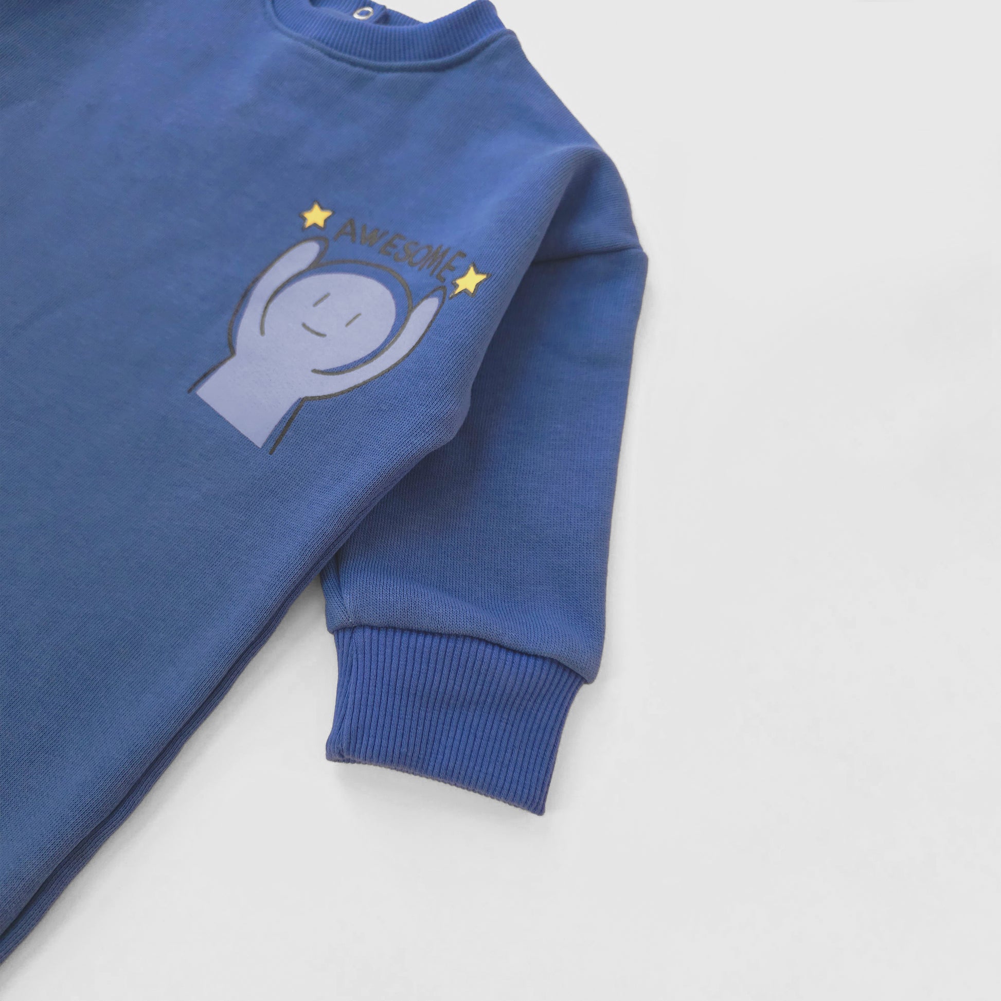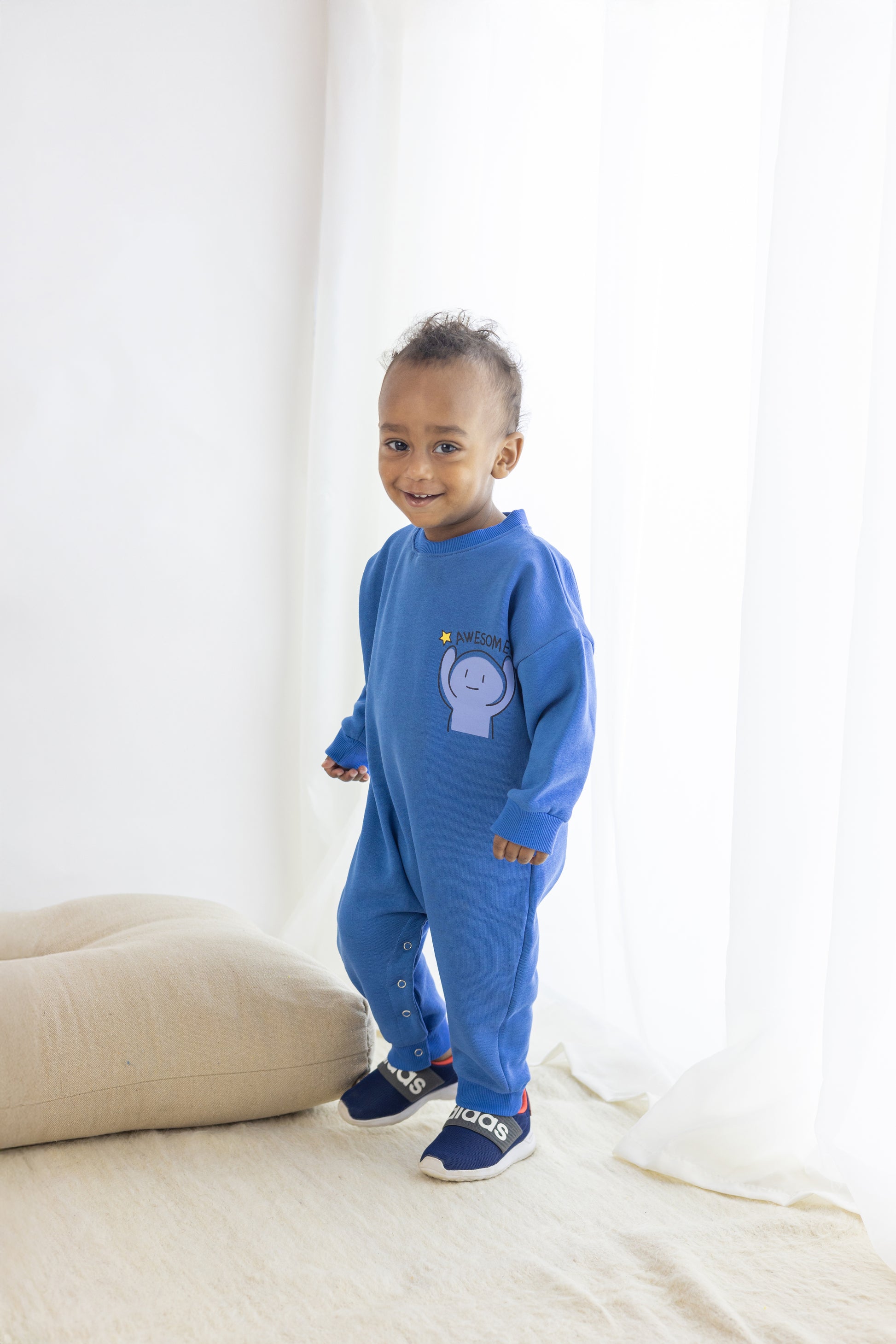Expertly crafted for babies from 0 months to 3 years, our Unisex Blue Oversized Awesome Jumpsuit combines comfort and style. The 100% cotton outer surface and soft fleece blended cotton inner lining provide ultimate coziness while your little one shines in this customizable over-sized jumpsuit.