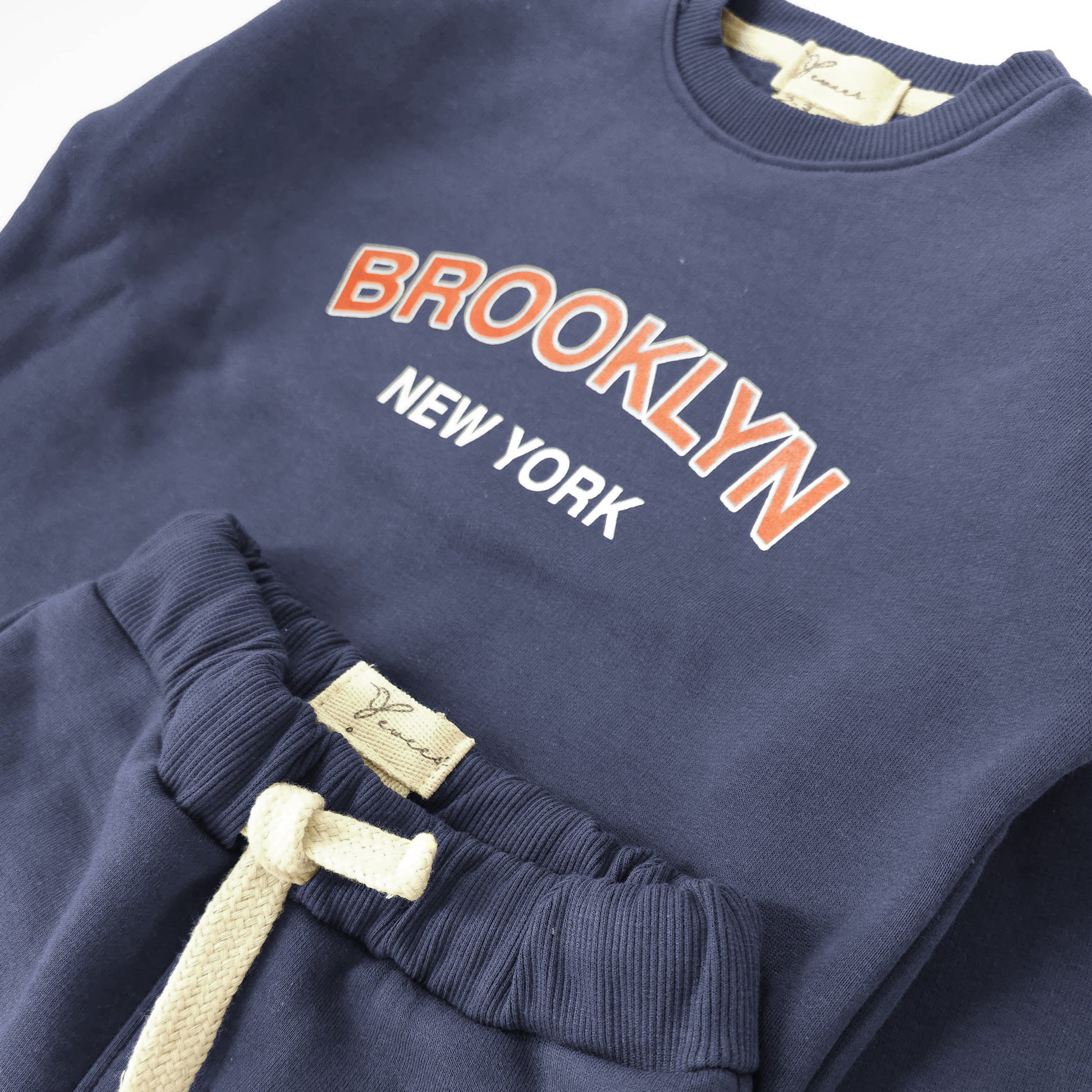Introducing our Unisex Oversized Brooklyn Sweatshirt & sweatpants 2 piece set, perfect for babies from 6 months to 4 years. Made with a 100% cotton outer surface and soft fleece blended cotton inner lining perfect for both boys and girls. Snuggle your little one in this customized set and watch them shine!